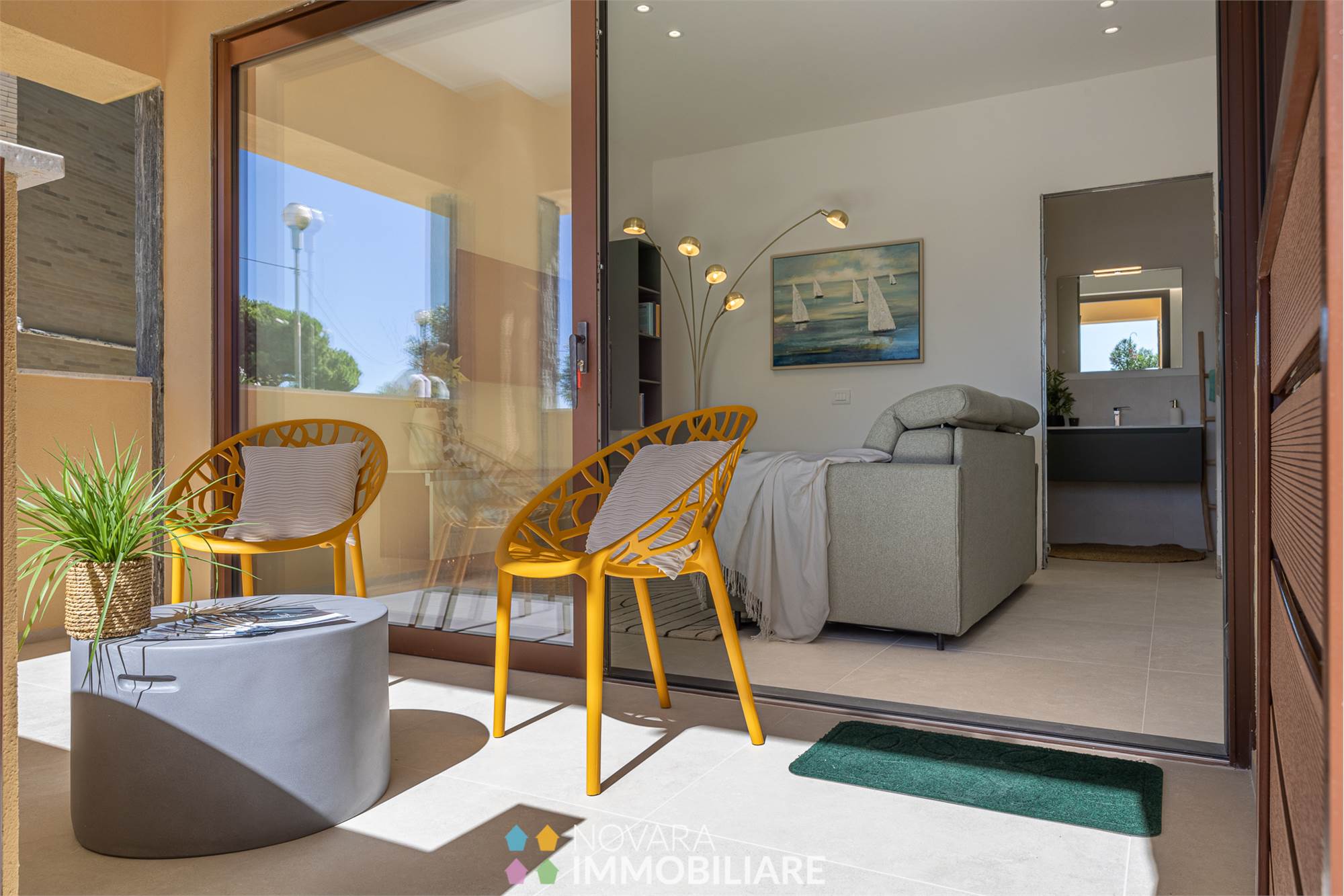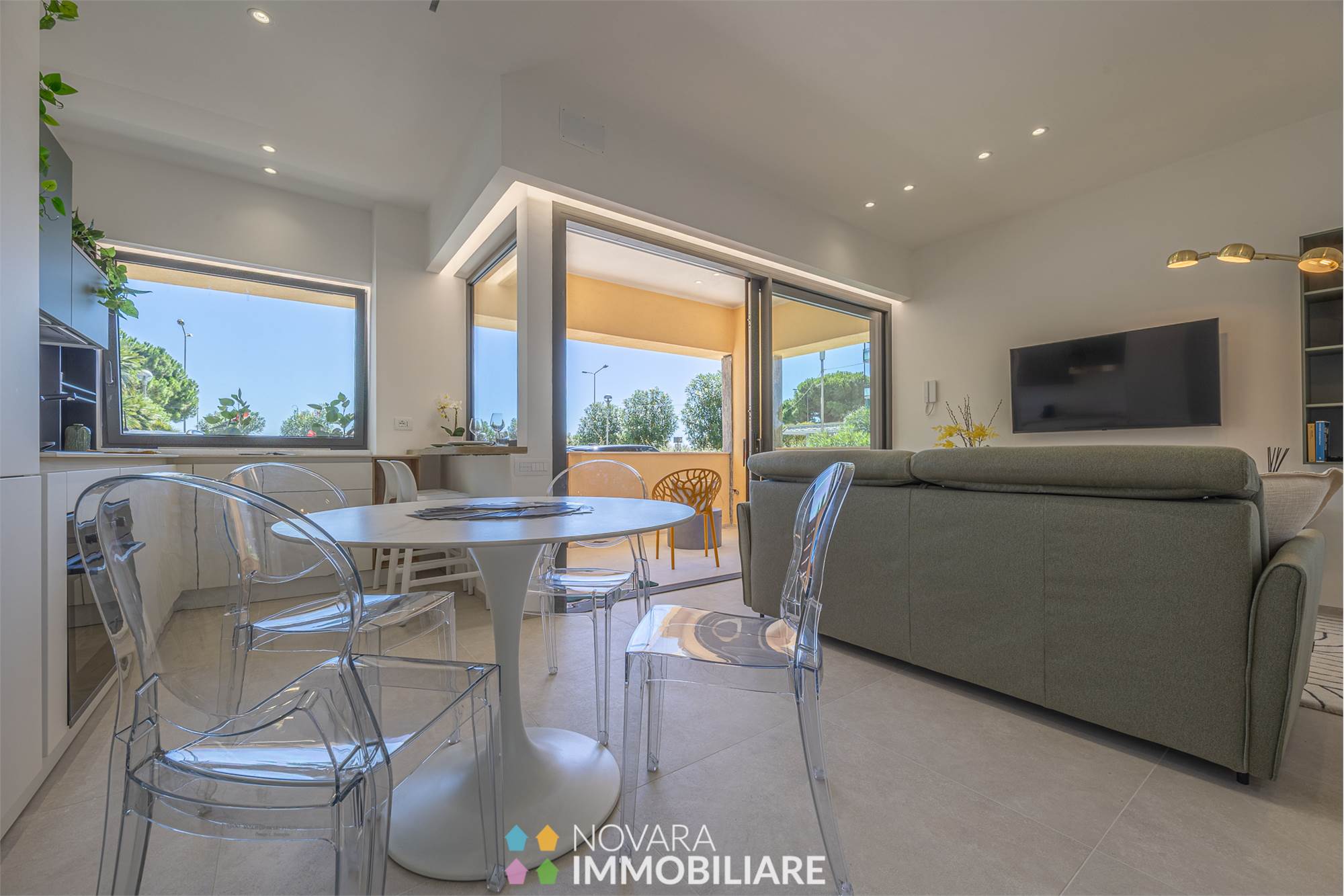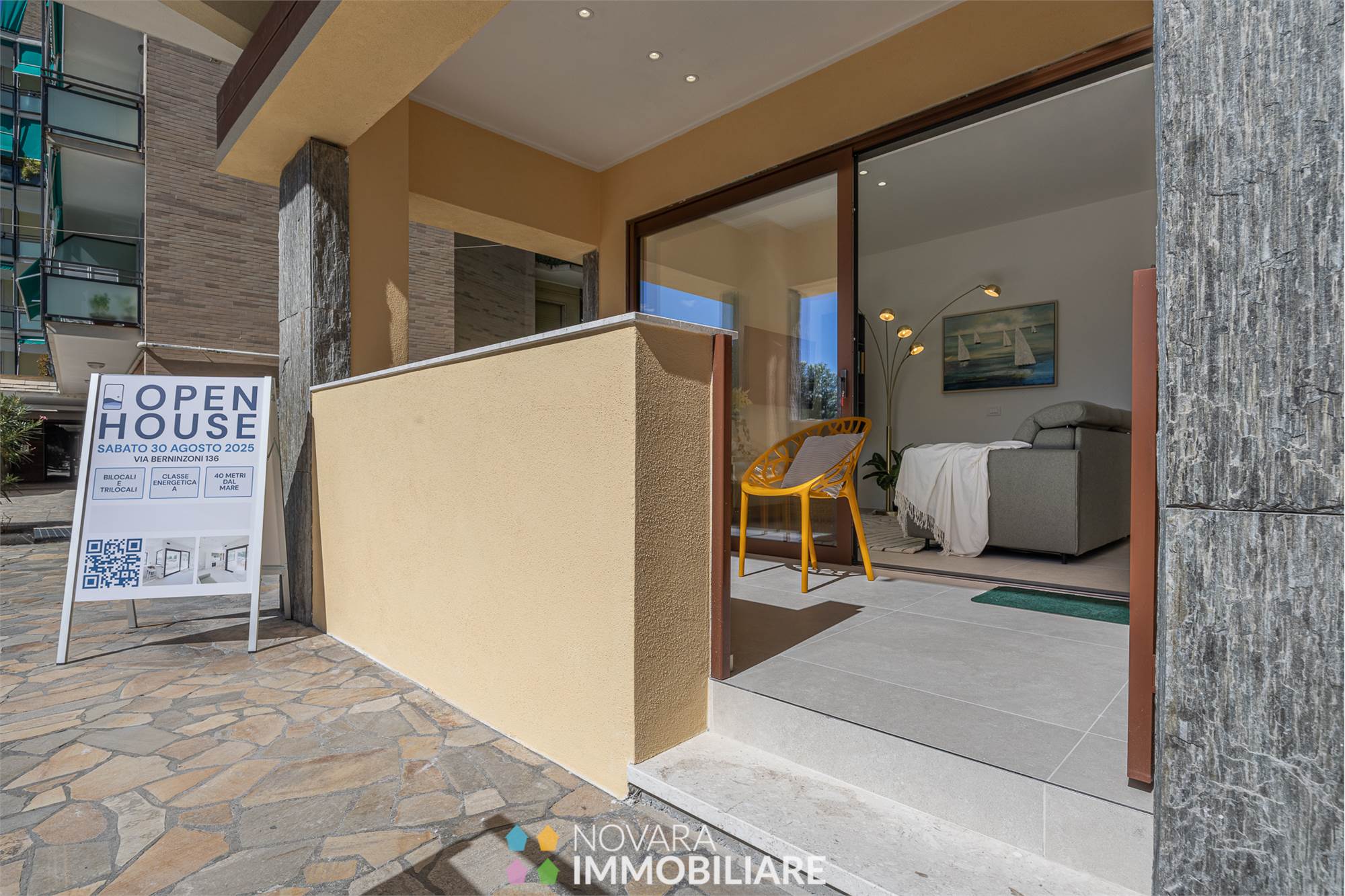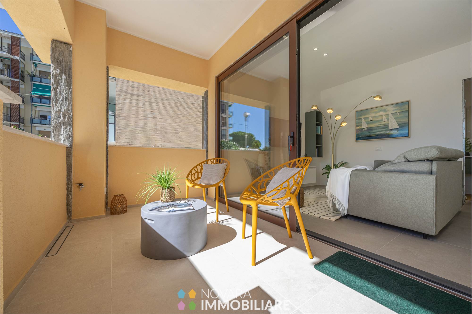 Elegant residential complex consisting of only 6 apartments 50 meters from the sea. Newly built, equipped with all comforts, no architectural barriers and high quality construction that make the housing units highly insulated in terms of thermal and acoustic levels, and equipped with advanced systems.\nTwo-room and three-room apartments ranging from 65 to 74 sqm, located on the ground floor of the building, in energy class A4.\nEach unit has an independent entrance through a private loggia, with a large living room, bedroom, bathroom with separate laundry and cellar. Prices starting from €349,000 to €398,000 for the three-room apartment.\nResidenza Rivamare is a building that looks to the future, it is not just a seaside residence but a secure and valuable opportunity over time!
